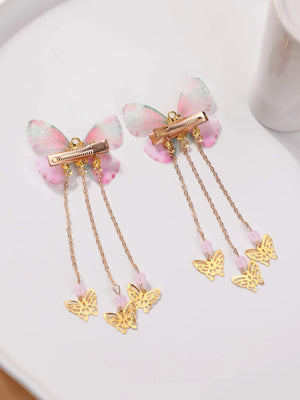 2x Butterfly & Chain Tassel Decorated Alligator Hair Clip – Cute Pink Accessories