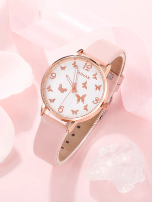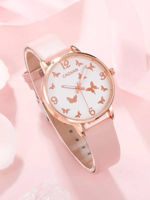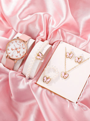 CADVAN 1x Horloge met Vlinderdetail & 5-delige Armbandenset – Voor Tienermeisjes