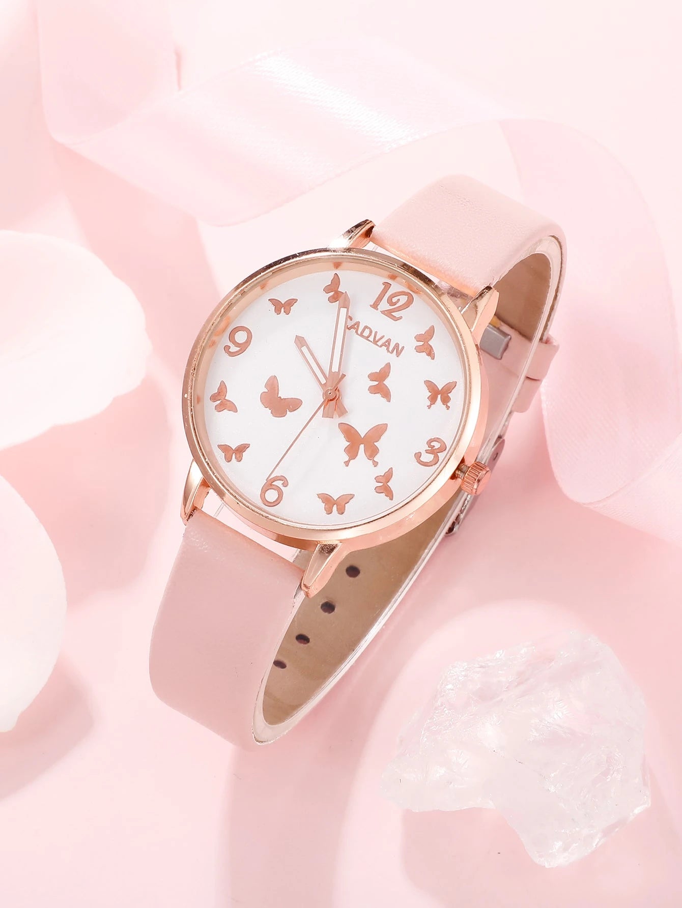 Lief, stijlvol en ideaal voor tieners – de CADVAN Vlinder Horloge- en Sieradenset is een perfecte combinatie van elegantie en mode. Het horloge heeft een sierlijk vlinderdetail op een ronde wijzerplaat, met een zachte roze PU leren band voor een vrouwelijke uitstraling. De set bevat 5 bijpassende armbanden, waarmee je elke outfit opvrolijkt.