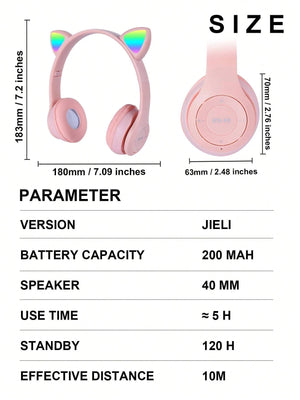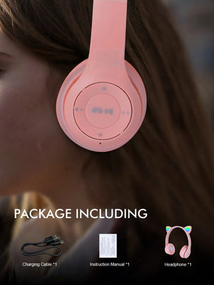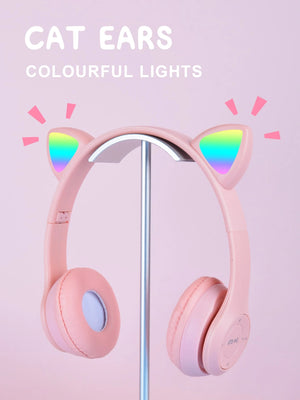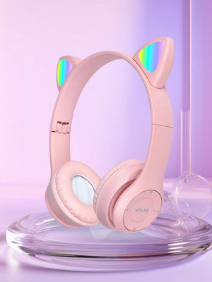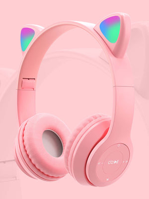 Wireless Cat Ear Headphones with Led Light - Foldable & Cute