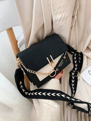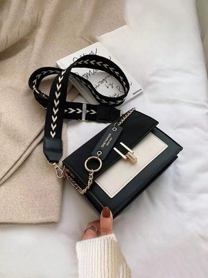 Deze modieuze mini schoudertas combineert stijl en verfijning met haar opvallende zwart-witte kleurenschema en contrasterende details. Gemaakt van hoogwaardig PU-leer en ontworpen in een vierkante flapstijl, is dit het perfecte accessoire voor een chique kantoorlook of een trendy dagje uit. De verstelbare band zorgt voor extra comfort en veelzijdigheid.