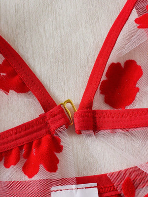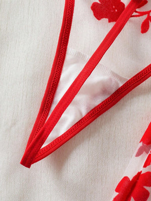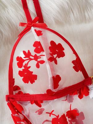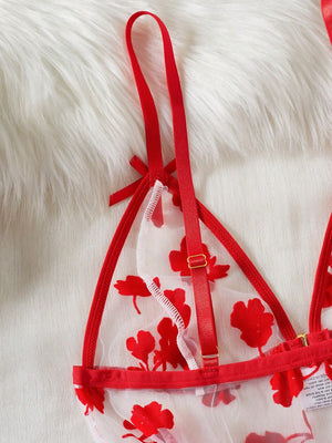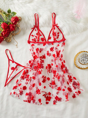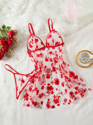 2-delige Dames Sexy Bloemenprint Mesh Pyjama Set – Verleidelijke Lingerie voor Valentijnsdag, Date Night & Feestdagen